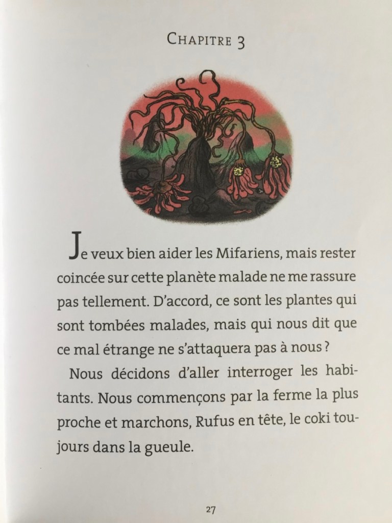 Pour vous dire la vérité, la science fiction n’est pas vraiment mon genre littéraire préféré mais je trouve que les illustrations de Roland Garrigue sont parfaites; visiblement sa spécialité c’est le poilu, velu et vilain alors ça colle bien!!