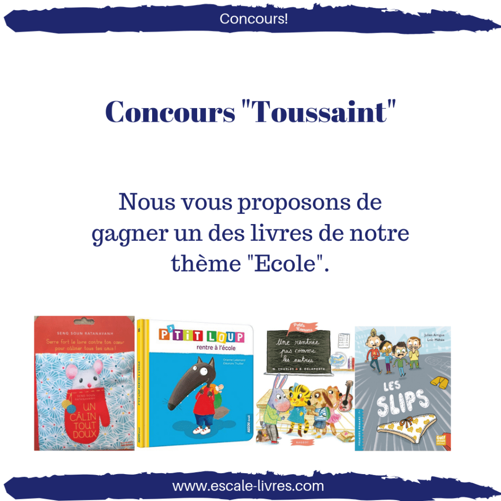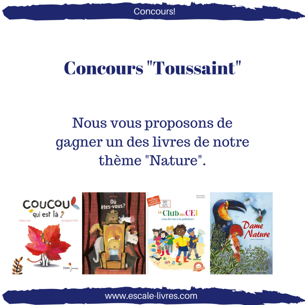 Aujourd’hui nous lançons pas un mais deux grands concours pour vous permettre de gagner des livres dont nous avons déjà parlé sur le blog. Vous aurez le temps de voter pendant toute la durée des vacances scolaires: soit du 19 octobre au 3 novembre minuit. Le tirage au sort aura lieu le 4 novembre et nous annoncerons le nom des gagnants le 5 Novembre. Nous vous contacterons en MP pour avoir vos coordonnées et vous envoyer votre livre.
