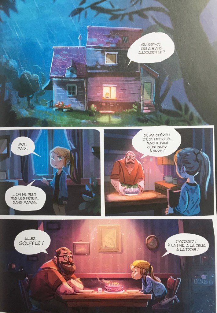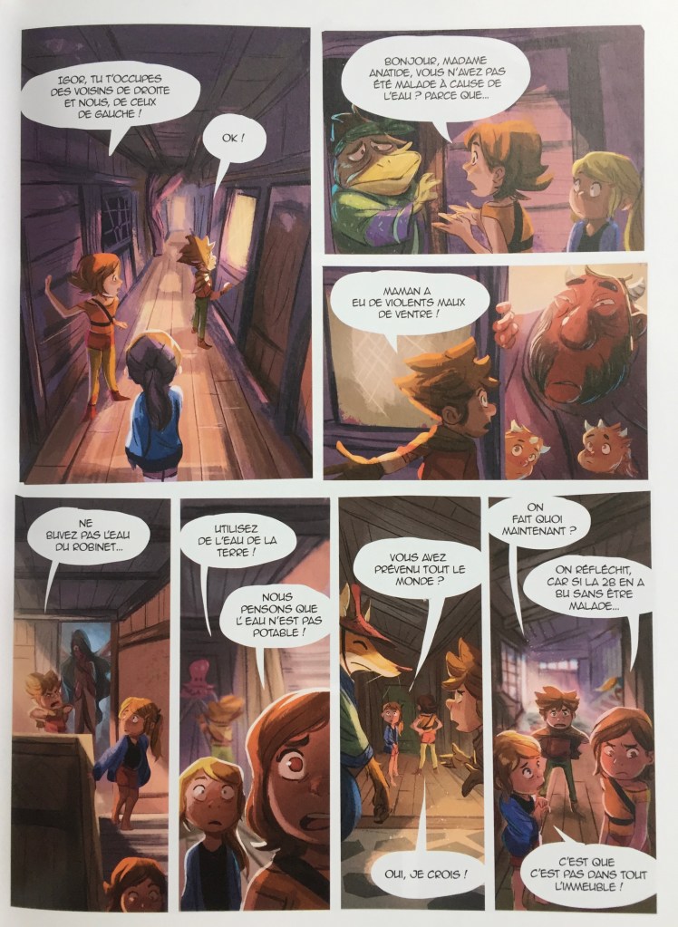 Ce que j’aime dans cette BD, c’est qu’elle n’est pas trop dense en textes (en bulles), ce n’est pas violent et donc tout à fait adapté à de jeunes enfants, à partir de 6 ans.
