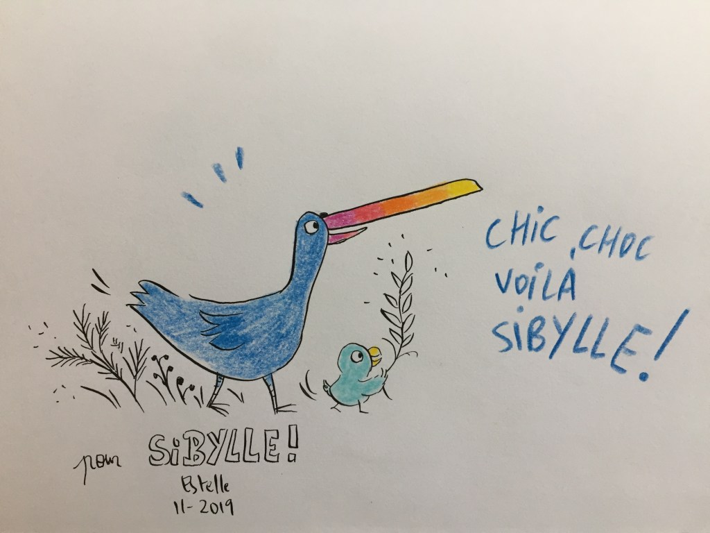 Et par ailleurs, Estelle est une personne souriante et disponible, qui a fait un dessin magnifique aux crayons de couleurs à ma fille qui ne se lasse pas de regarder cette dédicace.