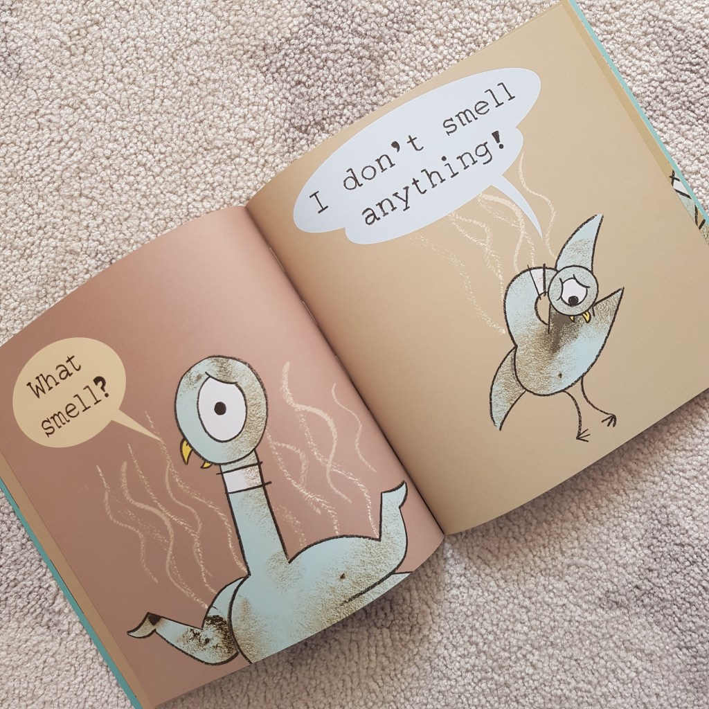 Les enfants adoreront voir le pigeon essayer de se justifier : on a l’impression qu’il nous parle et qu’il nous fait la conversation. D’ailleurs mes enfants lui répondaient quand je leur lisais le livre.