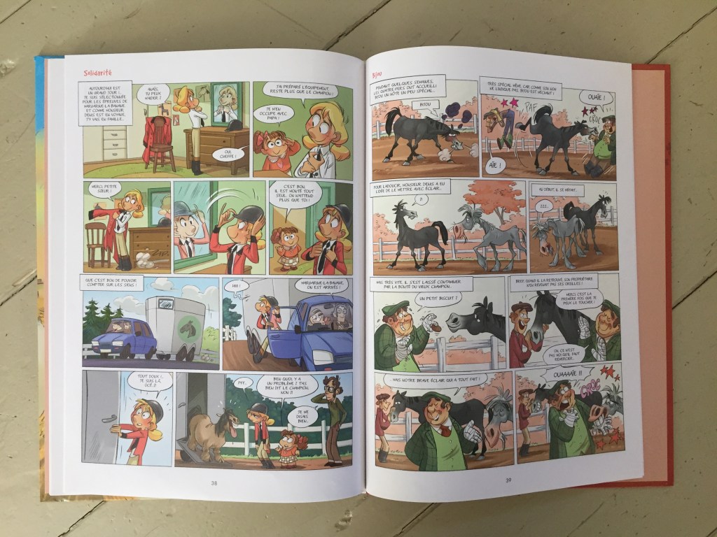 Ça parle compétition, dressage, voltige, on apprend tout un tas de choses sur les chevaux au rythme des pages, c’est bon enfant, bref tout pour plaire aux parents et aux enfants.