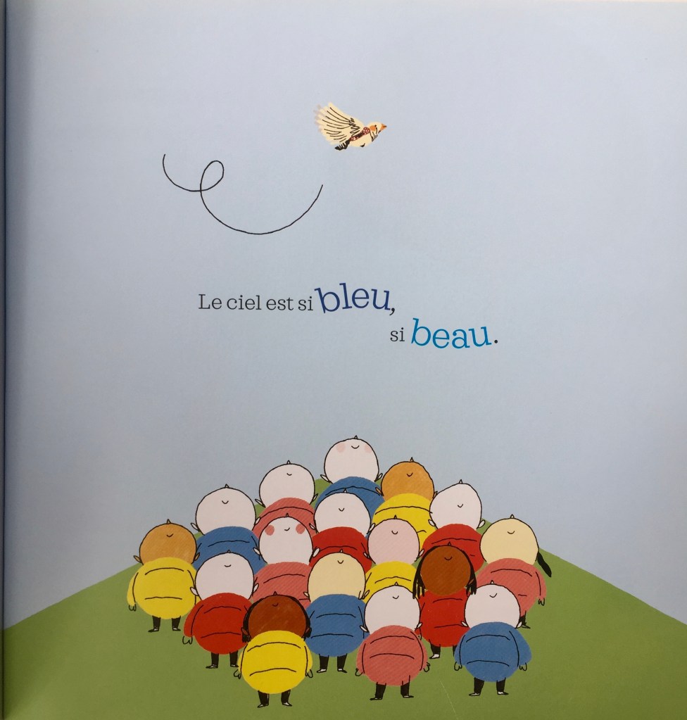C’est assez gai avec cette police dans différentes tailles, certains mots en couleurs et dans l’arrondi, ces petites frimousses souriantes quelques soient les saisons. Ce n’est pas un documentaire, plutôt une petite promenade au fil d’un album.