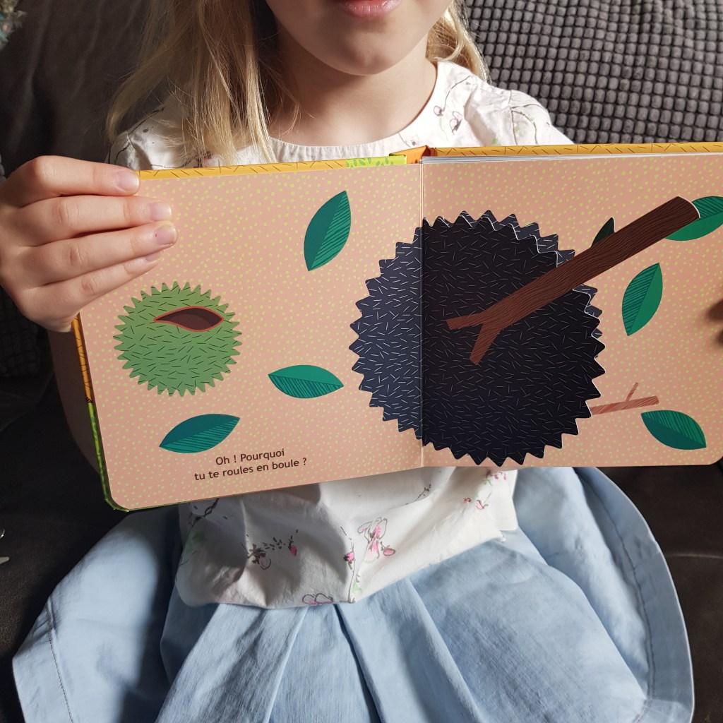 L’album est cartonné et les rabats sont assez robustes pour résister aux gestes parfois un peu brusques des petits.