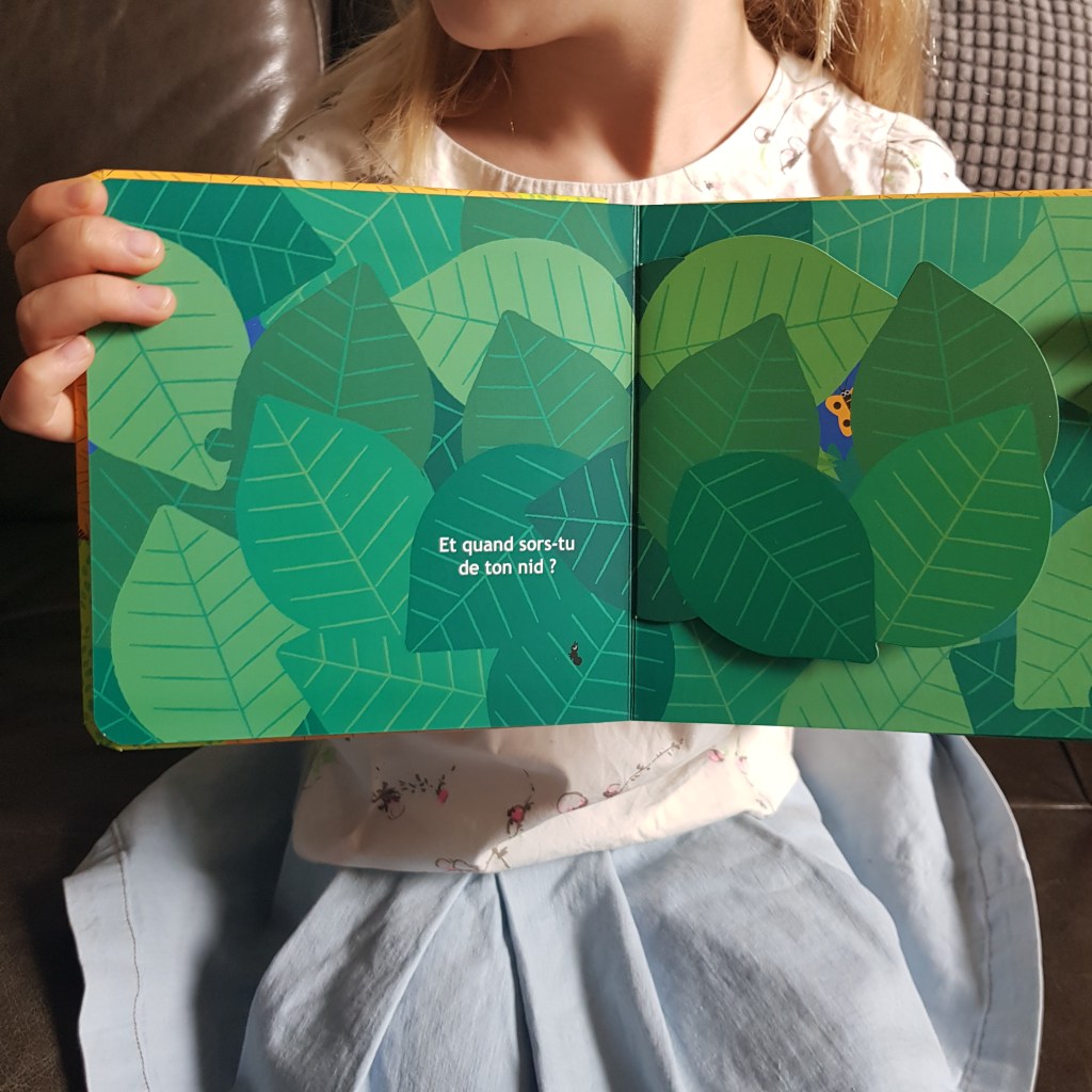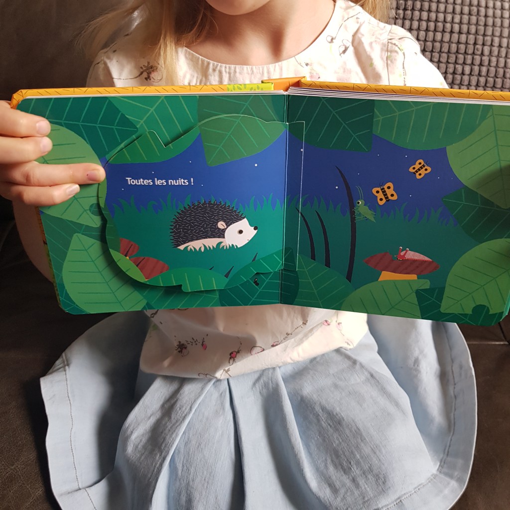 Les rabats rendent la lecture ludique et permet de faire des pauses. Car le texte est bien plus dense que pour les tous cartons habituels ! Il est d’ailleurs bien agréable de le lire en tant que parent si vous voyez ce que je veux dire !