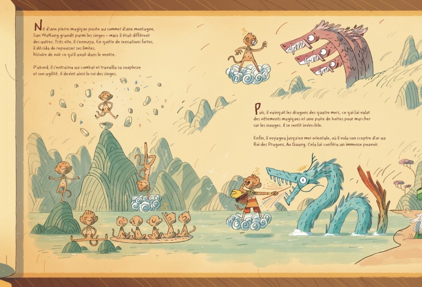 Kai and the Monkey King est disponible dans sa version anglaise originale aux Flying Eye Books sous le titre Kai and the Monkey King. Pour voir les illustrations de cette version, c’est par ici.