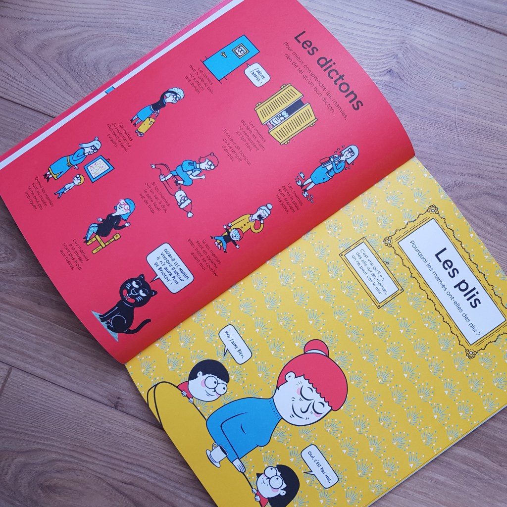 Les textes sont courts, les bulles façon BD donnent encore plus de vivant, et les remarques du petit chat noir au fil des pages amènent encore plus de drôlerie. Les illustrations sont gaies, comme les mamies de l’ouvrage et leur donnent un côté moderne.