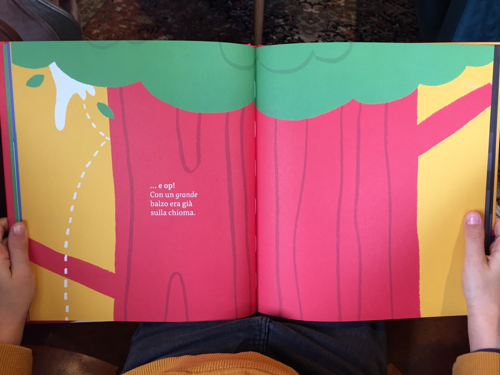 C’est tellement beau l’italien et les petits, même si vous leur racontez une histoire dans une autre langue, surtout une où les mots se répètent, ils adhèrent, c’est ça la magie de la lecture, elle traverse les pays.