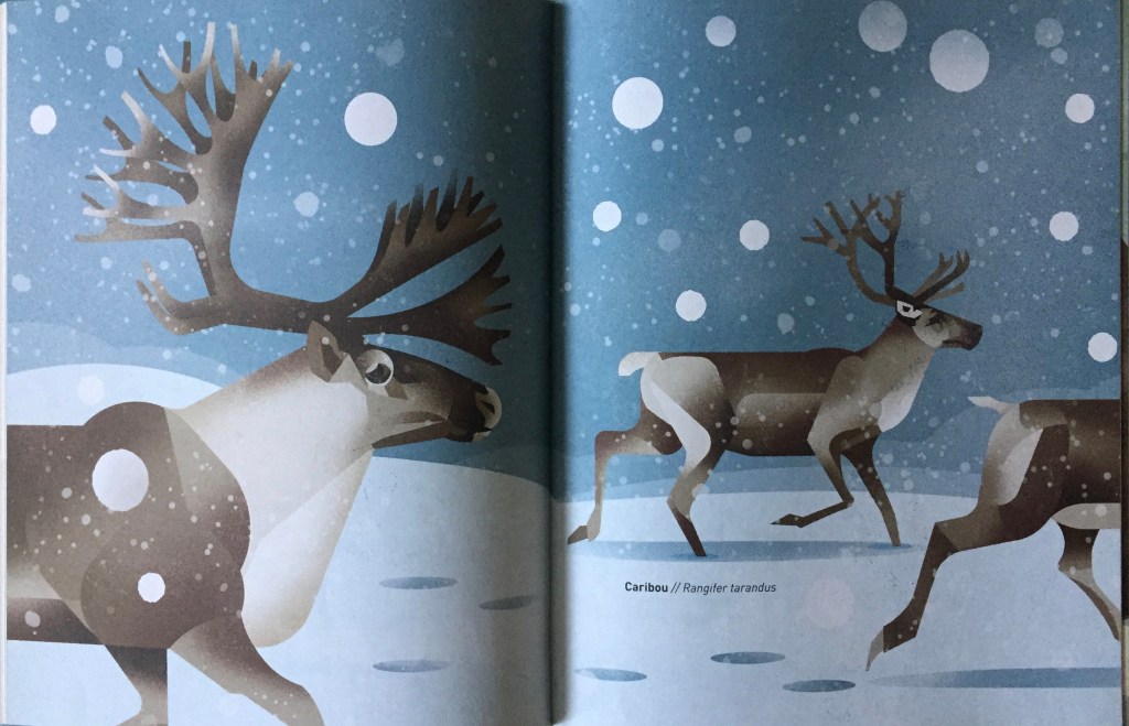 Les animaux sont dessinés dans leur habitat naturel, les textes sont brefs, mais nous livrent quelques détails sur leur mode de vie ou leurs caractéristiques. L’auteur a choisi les animaux en fonction de ses envies, il a décidé quand il y aurait un texte ou pas (et sélectionné le contenu): ce n’est pas une encyclopédie, vous l’aurez compris, c’est juste un très beau livre, avec de grandioses illustrations pleine page ou double page.