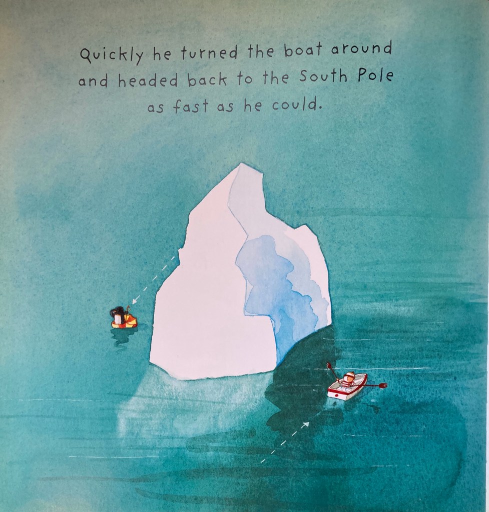 L’enfant dĂ©cida d’aider ce nouvel ami, et se mit Ă chercher partout d’oĂč il pouvait venir. Ensemble, ils partirent en barque sur la mer en direction du pĂŽle Sud et surmontĂšrent beaucoup d’Ă©preuves. Sur la route, le garçon racontait des histoires Ă son compagnon et le petit pingouin l’Ă©coutait attentivement.