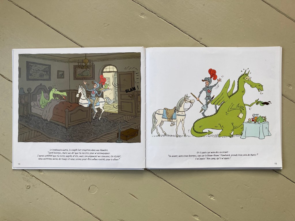 Je ne vais pas avoir le temps de vous parler de toutes les séries, mais puisque nous sommes ce mois-ci dans le mois des dragons, je vais m’attacher à « La série des Georges » , on parlera de « La série des loups » dans une thématique de contes détournés, un peu plus tard au cours de l’année!