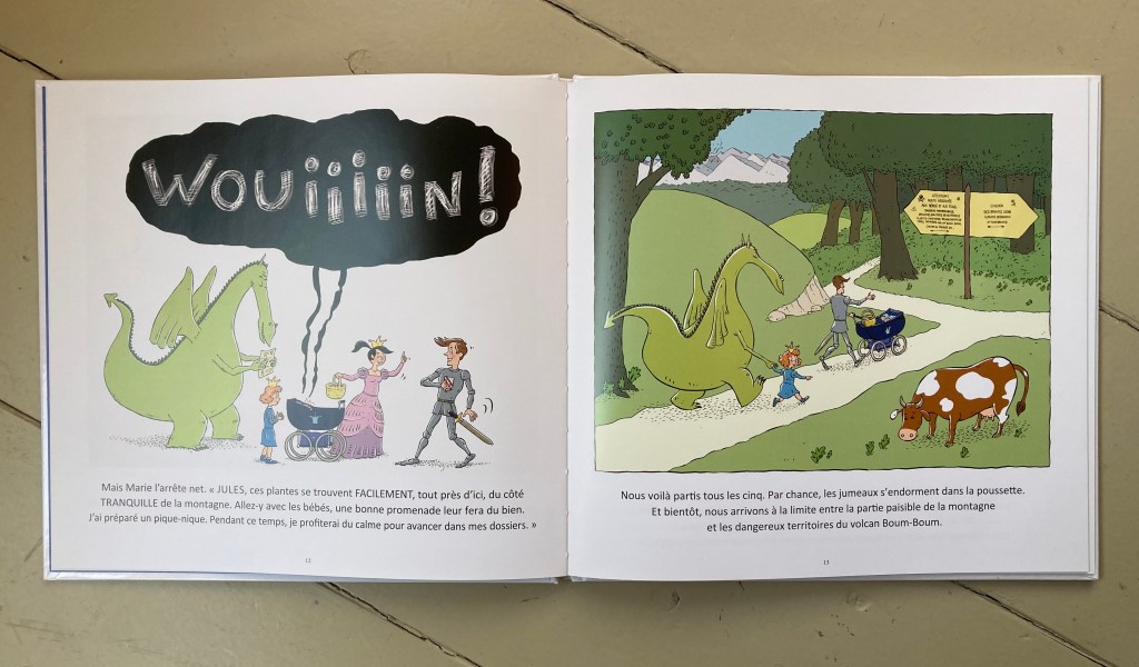 Ils sont tous dans un ordre chronologique, puisque dans le dernier en date, « Wouiiin! », le chevalier et sa princesse, ont des jumeaux après la petite Selma (qui a aussi donné lieu à un livre). Il est toujours aussi amusant, les jumeaux hurlent à longueur de journée et Selma et Georges n’en peuvent plus. Marie envoie toute la famille chercher des plantes dans la montagne pour soigner ses bébés, ce qui va donner lieu à une nouvelle aventure dans laquelle Georges est toujours horripilé par Jules.