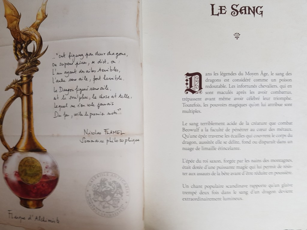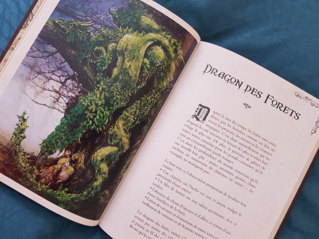 Si on plonge à l’intérieur, on pourra pénétrer dans cet univers extraordinaire et fascinant. On y trouvera un descriptif des différents dragons mais aussi des récits et des légendes mettant en scène ces bêtes fabuleuses que sont les dragons. Les nombreux dessins et les annotations renforcent cet aspect grimoire et les illustrations en couleurs sont de toute beauté.