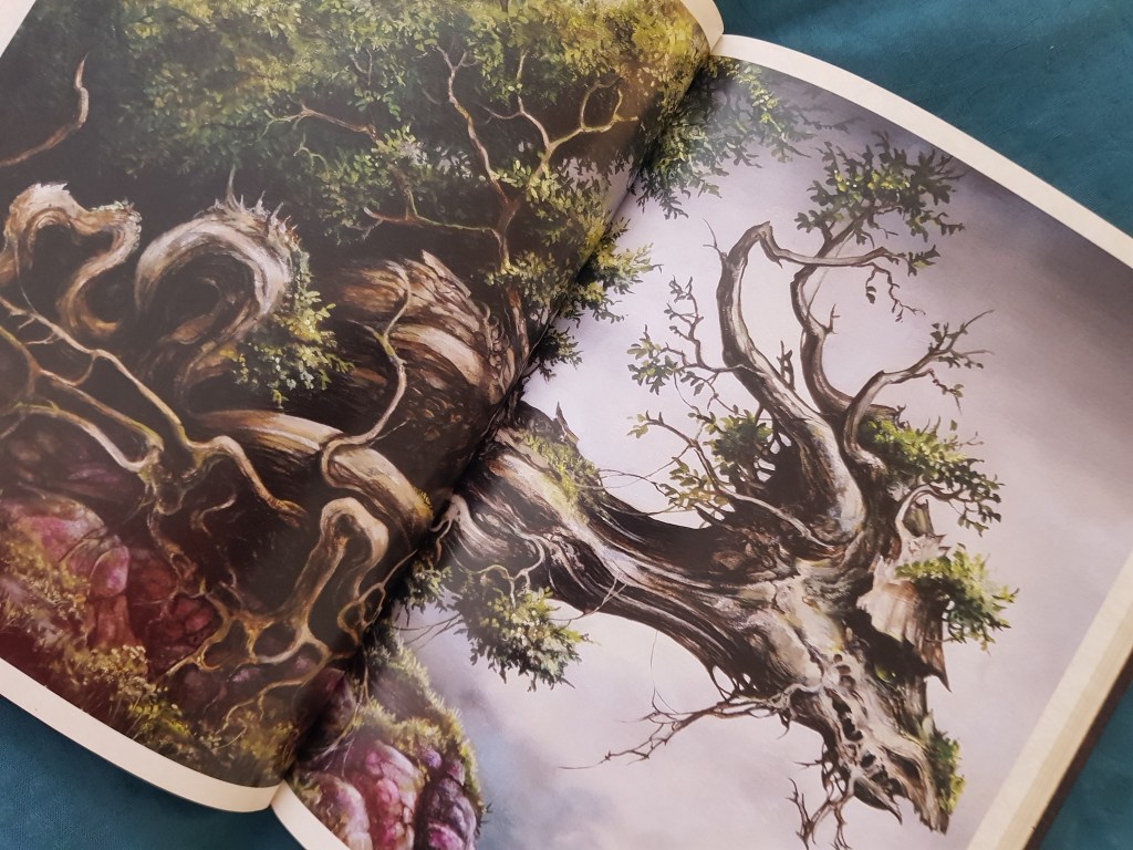 L’album a l’aspect d’un vieux grimoire. C’est sans doute d’ailleurs, outre la belle illustration de dragon, ce qui a attiré mon fils en premier. Un album a la couverture épaisse dans les tons bruns qui rappellent le cuir et le bois.