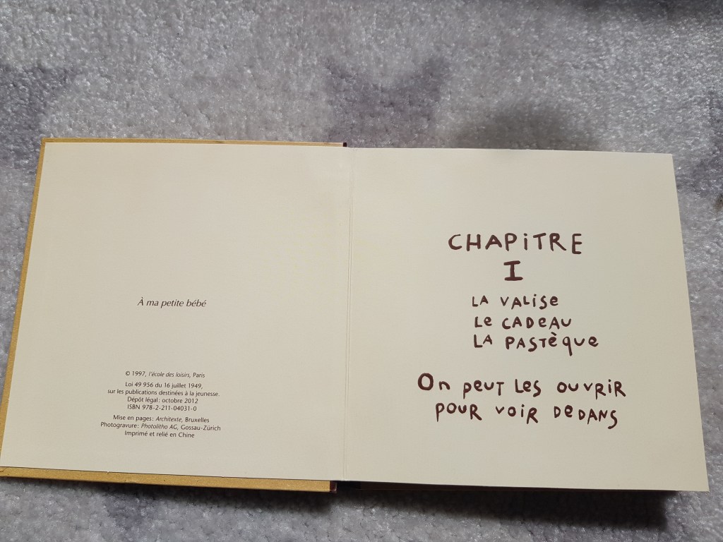 Il s’agit ici d’un petit album animé avec des rabats à soulever. Toujours un énorme succès avec les petits ces rabats, c’est magique ! Dans ce bel album aux illustrations douces, on soulève les rabats pour pour découvrir ce qui se cache à l’intérieur des objets : il y a certain qu on peut ouvrir pour voir ce qu’il y a dedans (comme une valise), certains qu’il vaut mieux ne pas ouvrir (comme un ballon de baudruche…). On ne peut bien évidemment pas ouvrir sa maman pour voir ce qu’il y a dans son ventre ! Donc on le montre ici !