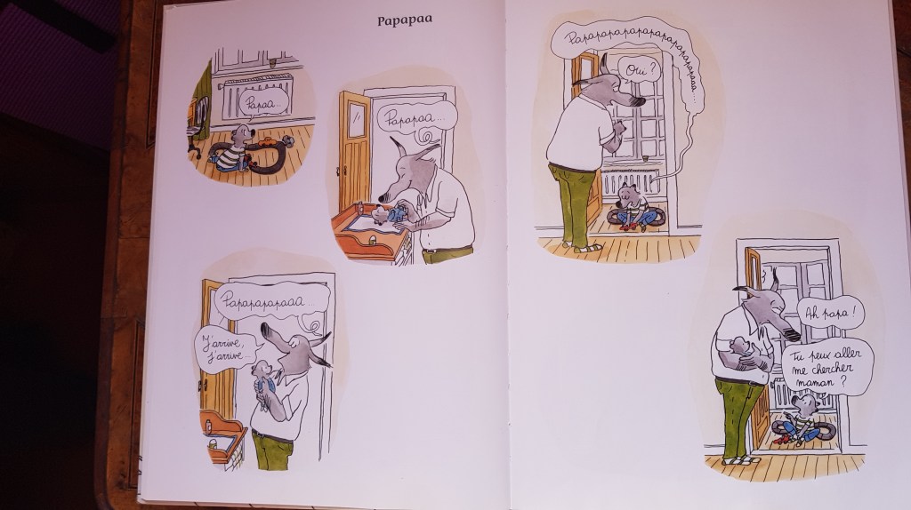 Les illustrations sont colorées, les personnages sont souriants et on prend plaisir à voir le papa très présent, s’occuper de son petit garçon.