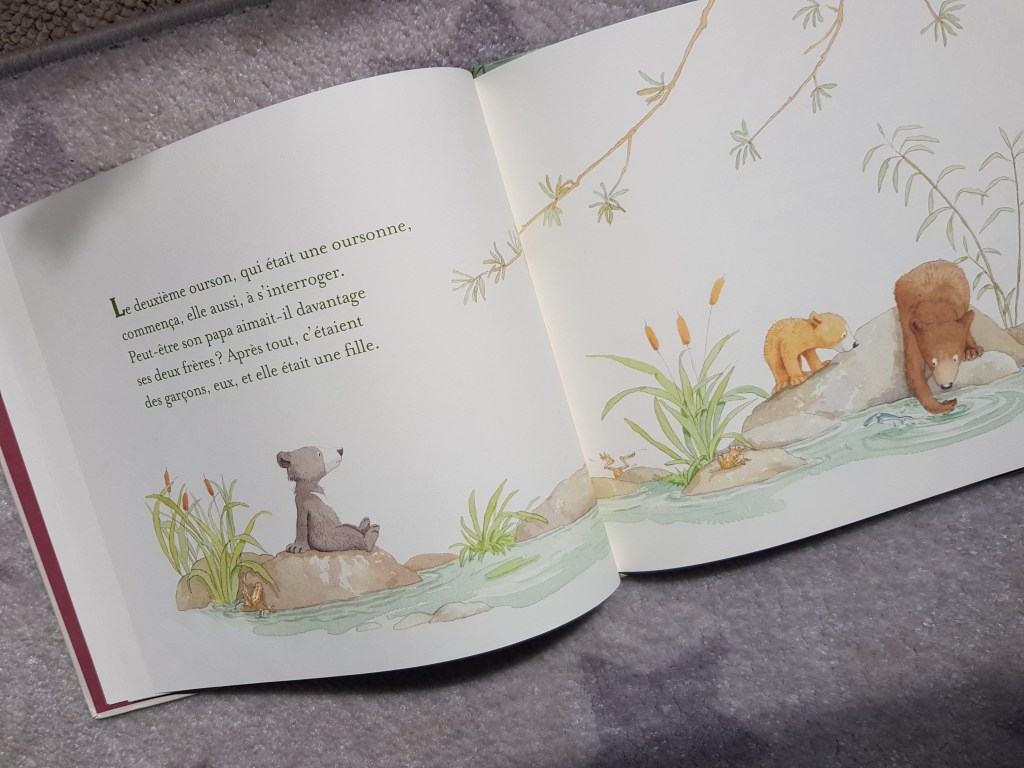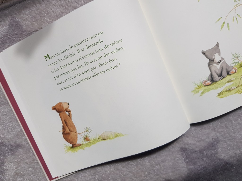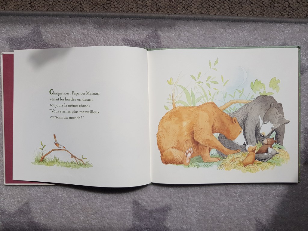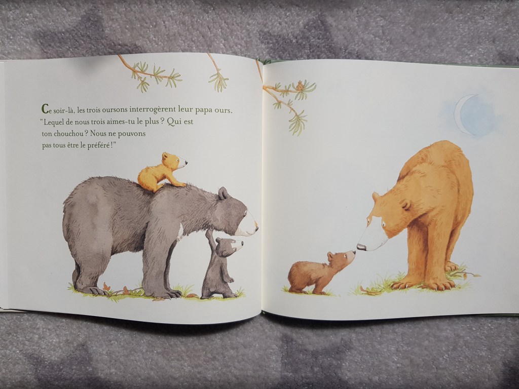 Chaque soir, Maman et Papa ours bordent leurs 3 petits oursons en leur disant toujours la même chose : « vous êtes les plus merveilleux oursons du monde ! ». Mais un jour, les oursons se posent des questions : comment savent-ils qu’ils sont les plus merveilleux oursons du monde ? Et surtout lequel des trois Papa et maman préfèrent-ils ? Car le premier n’a pas de tâche, le deuxième est une fille, et le troisième est plus petit. Evidemment, Papa et Maman ours trouveront un moyen de les rassurer et de leur montrer que tout ça n’a pas la moindre importance, et qu’ils les aiment tous de la même façon !