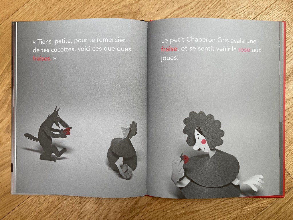 Sans tout vous révéler, chaque personnage va reprendre la couleur qu’il a initialement dans le conte. Le loup gris va t’il manger le chaperon rouge dans cette version?