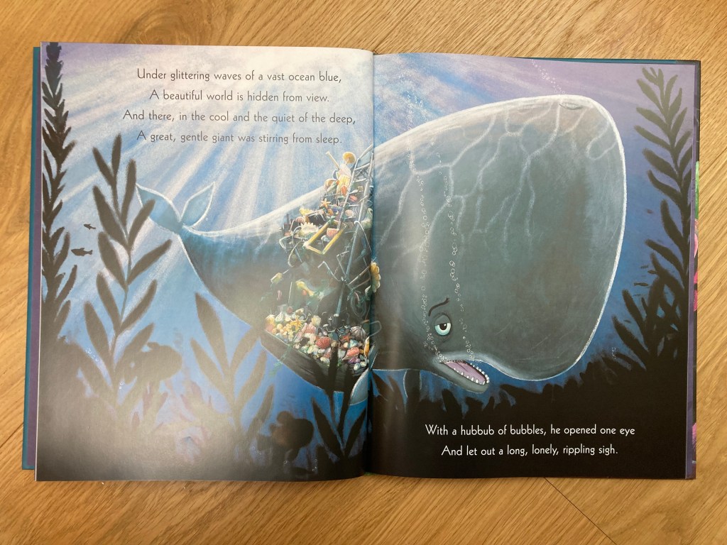Il entasse, mais il se sent si seul; impossible d’arrêter cette frénésie…Alors qu’il se laissait errer, il se retrouva dans un monde merveilleux de couleurs, les fonds sous-marins étaient d’une beauté rare, mais les habitants de ce coin de paradis étaient un peu à l’étroit et la promiscuité les rendant nerveux. Alors que Humphrey s’approchait pour s’emparer de toutes ces merveilles, un petit crabe prénommé Crystal l’interpela: « Qu’est ce que tu veux vraiment? », elle le questionne, comment fait-on pour être heureux? Est-ce que être heureux c’est se servir? prendre? ou peut-on trouver le bonheur en offrant, partageant.