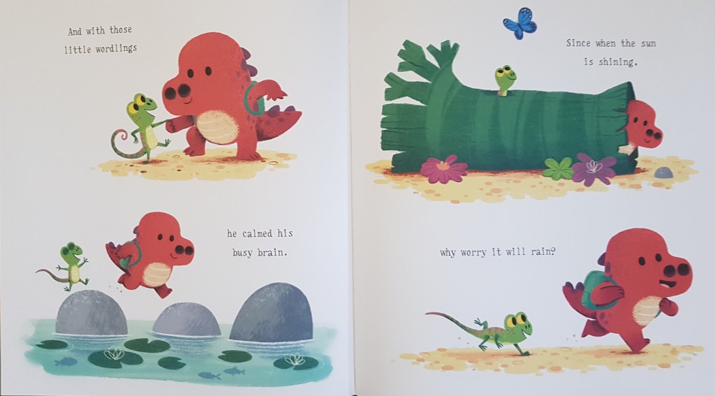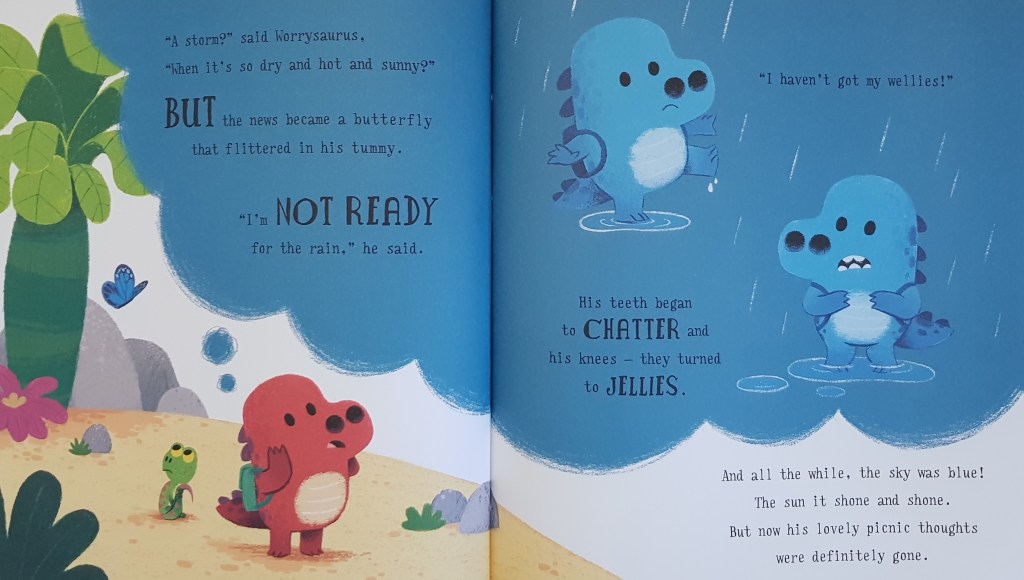 Dans cet album, Worrysaurus, un petit dinosaure mignonnet aime toujours avoir avoir un plan. Il a d’ailleurs préparé une journée parfaite. Mais son cerveau lui joue des tours et il se met à imaginer tout ce qui pourrait bien arriver. Et s’il n’avait pas assez à manger ? Et s’il se perdait ?