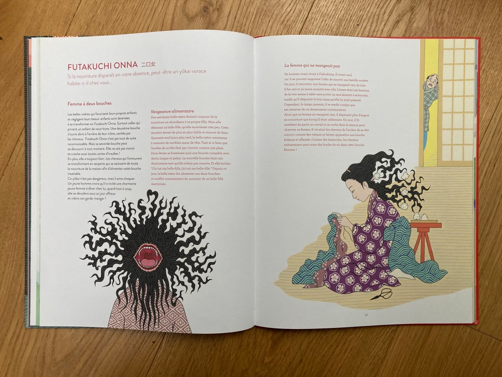 Ce livre est parfait, pour un enfant désireux d’en savoir plus sur les yôkai, ces créatures surnaturelles du folklore japonais. Le japonais est une langue composée de kanjis, des signes qui ont plusieurs lectures possibles. Pour écrire le mot yôkai, on utilise deux kanjis, le premier faisant référence à «attirant», «ensorcelant» ou «calamité» et le second à «apparition», «mystère», «méfiant».