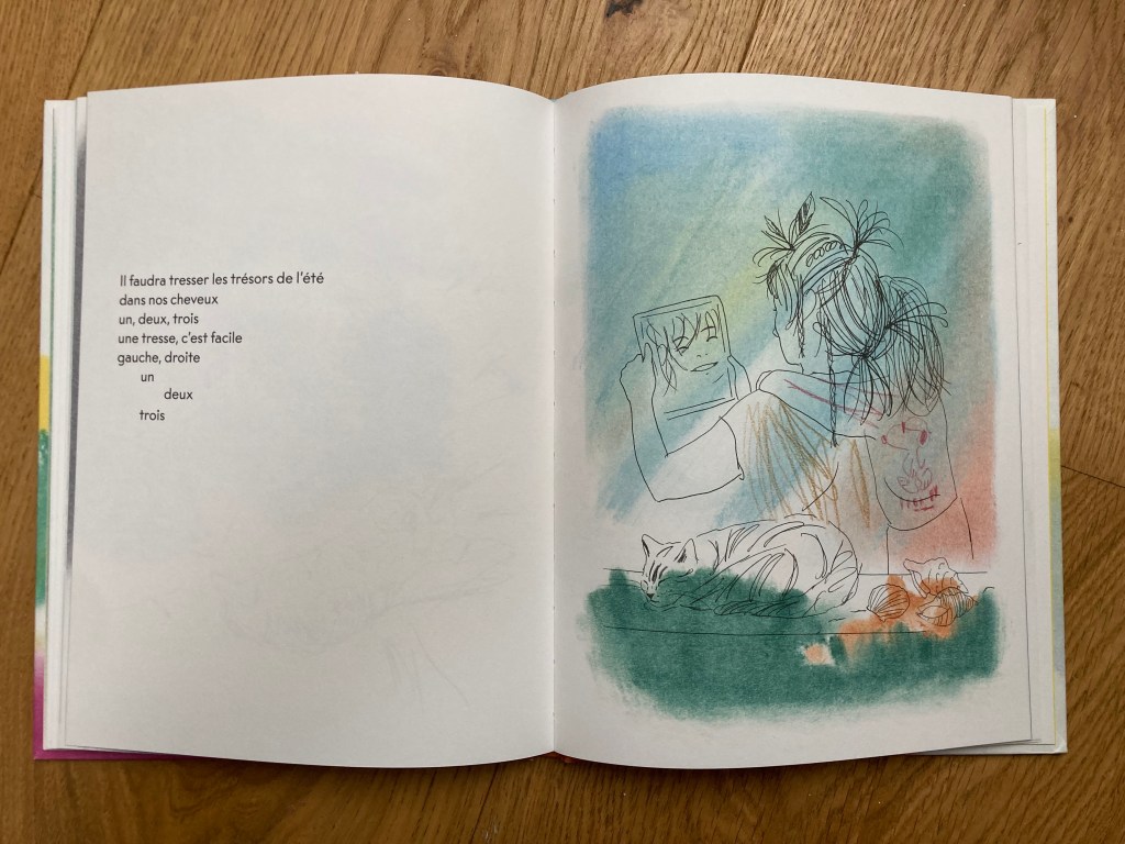Ma fille, elle aussi rêvait d’être grande soeur. Elle a pris le livre sans moi et l’a lu dans son coin, d’une traite. Et elle a crané à l’école avec sa sublime dédicace, de si beaux mots, des illustrations aux pastels et aux bics. Je ne lui en veux pas, elle est tellement jolie.