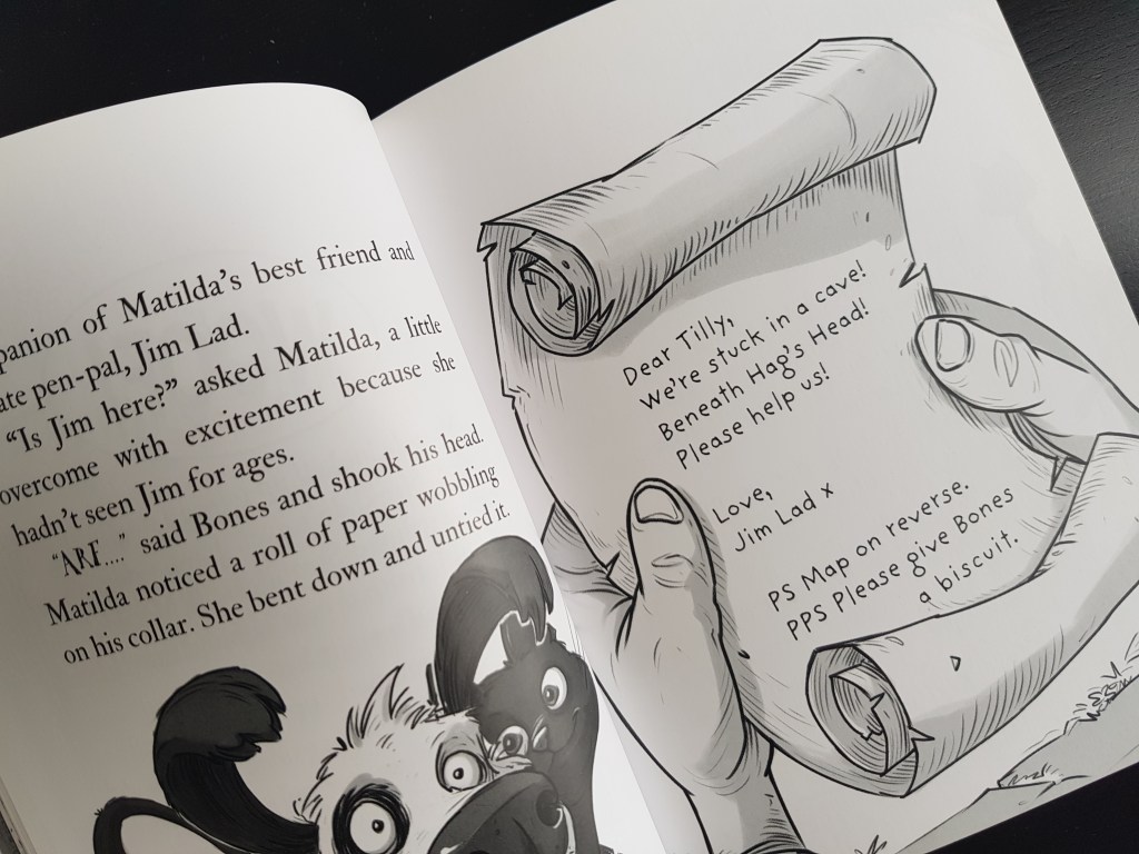 Les Jolley-Rogers, une famille de pirates sympathiques, ont dĂ©cidĂ© de passer une journĂ©e Ă la plage. Le papa et la petite soeur, puis la maman disparaissent dans une grotte. Jim, le grand frĂšre comprend qu’il se passe quelque chose de pas trĂšs clair la dedans. Il attache donc un message au collier de son chien, Bones, pour qu’il le donne Ă son amie Matilda au cas oĂč il une serait pas de retour dans cinq minutes. Ă©videmment, Jim ne reviendra pas et Mathilda volera Ă leur secours.