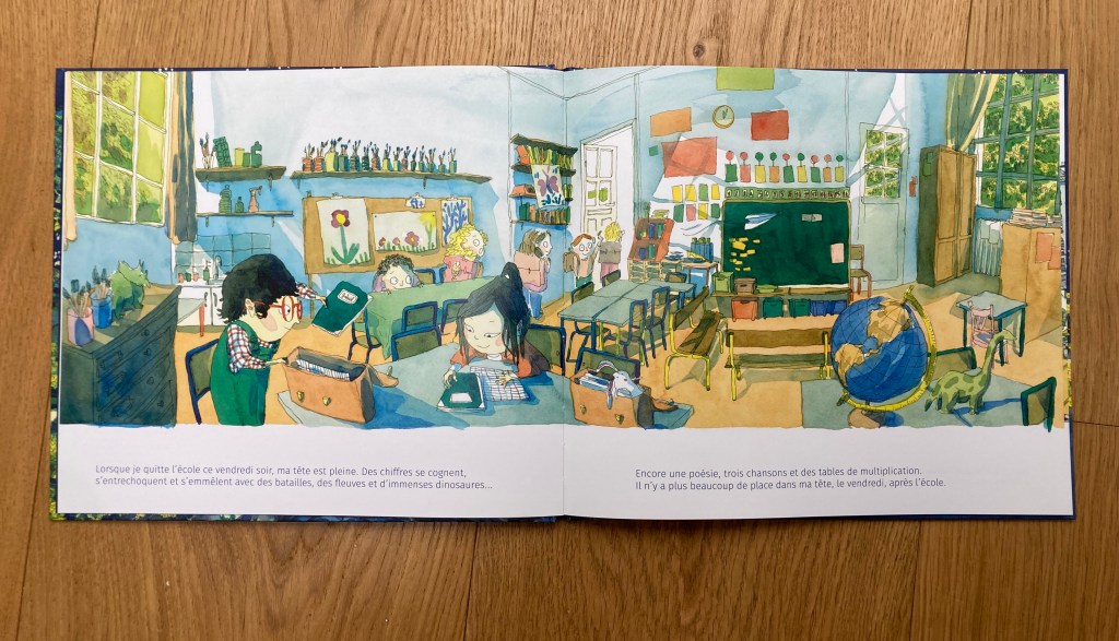 Mais Maman arrive avec sa voiture, et elle emmène Gabriel à la campagne, le paysage change, le calme s’installe dans la tête de chacun, on entend la nature et le vendredi Gabriel retrouve son grand-père et prend le temps.