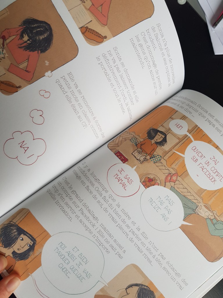 Sonia finit par délaisser ses écrans et ses réseaux et renoue la conversation avec sa maman. Ça faisait si longtemps qu’elles ne s’étaient pas vraiment parlé ! Évidemment tout finira par s’arranger.