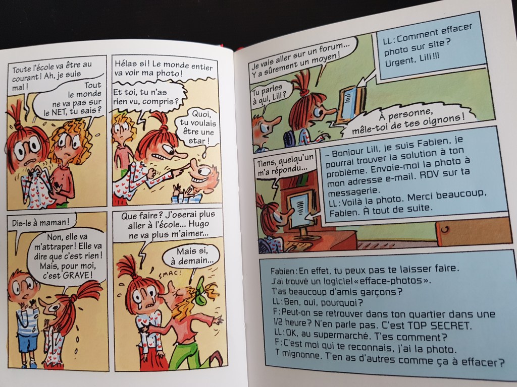Une très bonne BD, très girly (et avec quelques recettes de cuisine !), idéale pour toucher cette catégorie : il faut faire prendre conscience aux enfants (de plus en plus tôt malheureusement) qu’internet a ses dangers, qu’ils ne sont pas à l’abris derrière leur écran, et qu’ils doivent toujours rester sur leur garde. Et bien sûr de ne pas hésiter à parler à une personne adulte de confiance en cas de doute ou de problème.