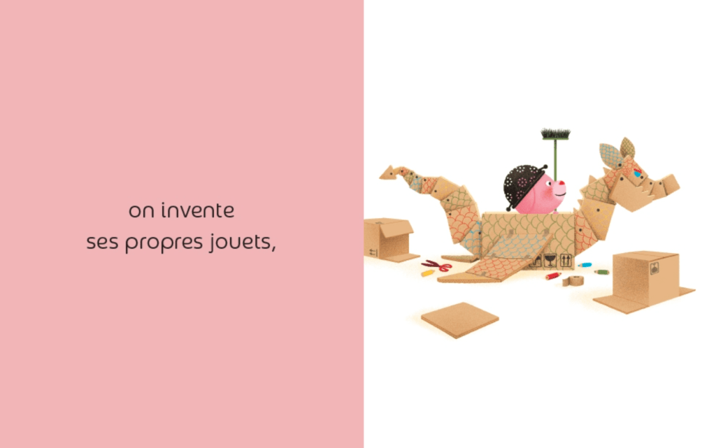Le dico de la vie sans écran donne plein d’idées de tout ce qu’on peut faire quand les écrans sont rangés : inventer ses propres jouets, faire des cabanes, faire des câlins, écouter de la musique, monter des spectacles…