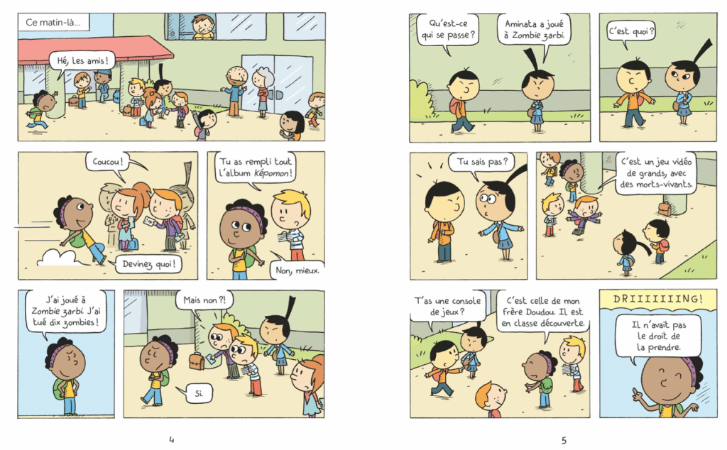 Cette fois-ci, Aminata devient accro aux écrans ! Elle a accaparé la console de son grand frère et s’amuse à ratatiner les zombies. Mais Aminata joue aussi la nuit : elle ne dort plus et n’écoute plus en classe ! Et même quand elle invite ses amis chez elle, elle passe plus de temps à jouer toute seule qu’à s’intéresser à eux. Les jeux vidéos ont pris peu à peu le contrôle de sa vie.