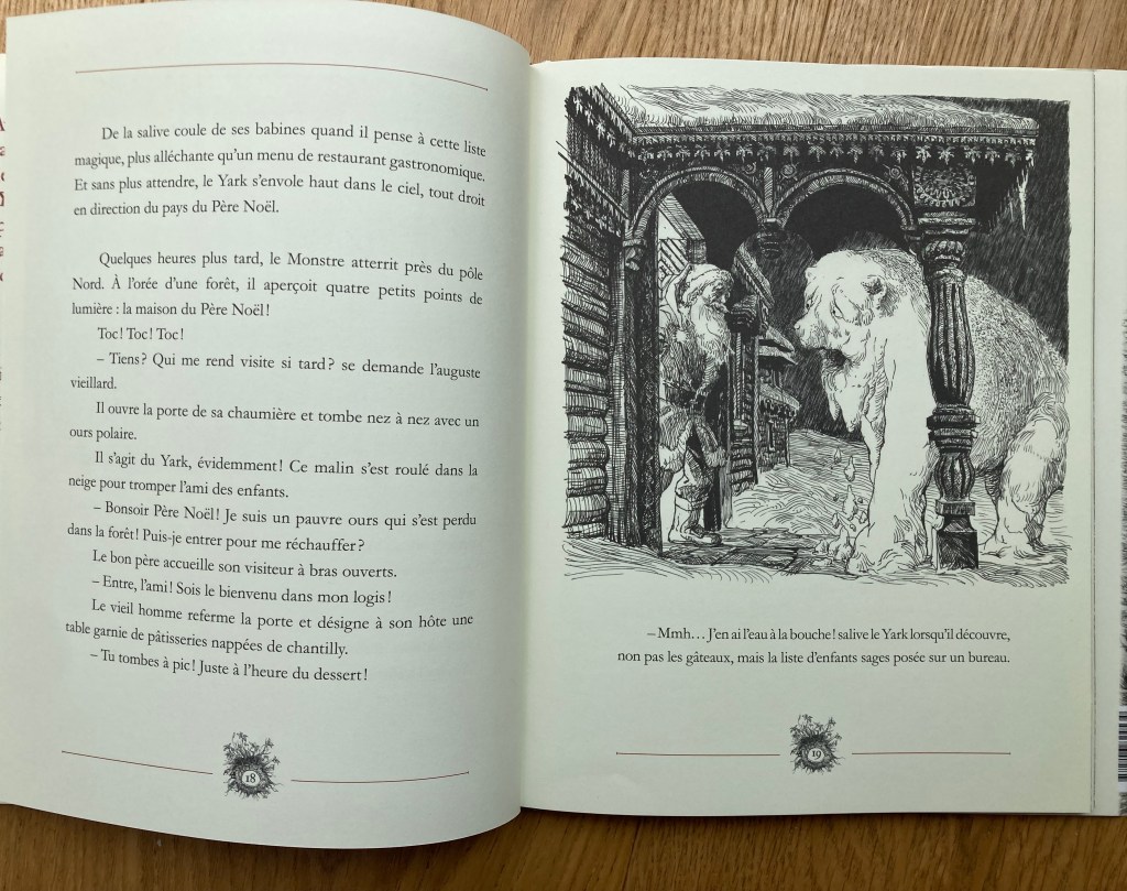 Il y a un côté très rétro dans cet album: dans les mots qui souvent riment et les illustrations en noir et blanc telles des gravures de Durer, la présentation des chapitres. J’adore l’ambiance créé par ce duo. Le livre fonctionne pour les parents et les enfants, une vraie prouesse!