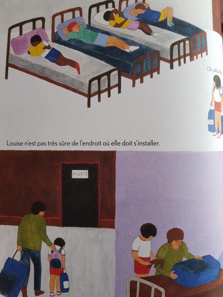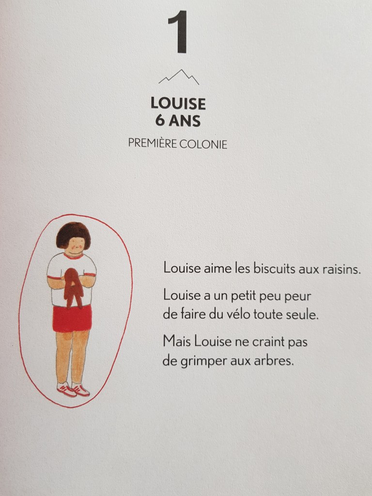 Nous rencontrons dans cet album Louise, Marco, Jeanne, Nina et Ali. Cinq enfants d’âges différents qui partent en colo. Pour certains, c’est la, premiere fois, pour d’autres, ils sont en terrain connu.