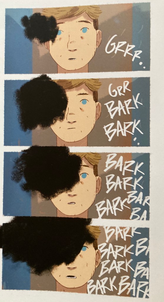TrĂšs rapidement dans le livre, nous comprenons que Bear se retrouve lui aussi dans le noir. Il devient subitement agressif et se renferme sur lui-mĂȘme car il ne comprend pas ce qui lui arrive. Et surtout il se sent impuissant, plus capable d’aider son maitre.