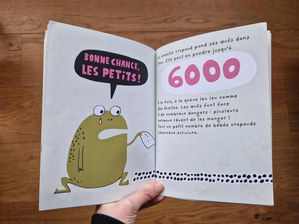 Bref, on apprendra de nombreuses choses sur le crapaud, tout en rigolant bien. Et vous ne le confondrez plus avec sa cousine la grenouille !