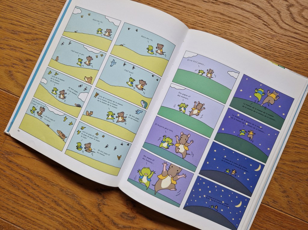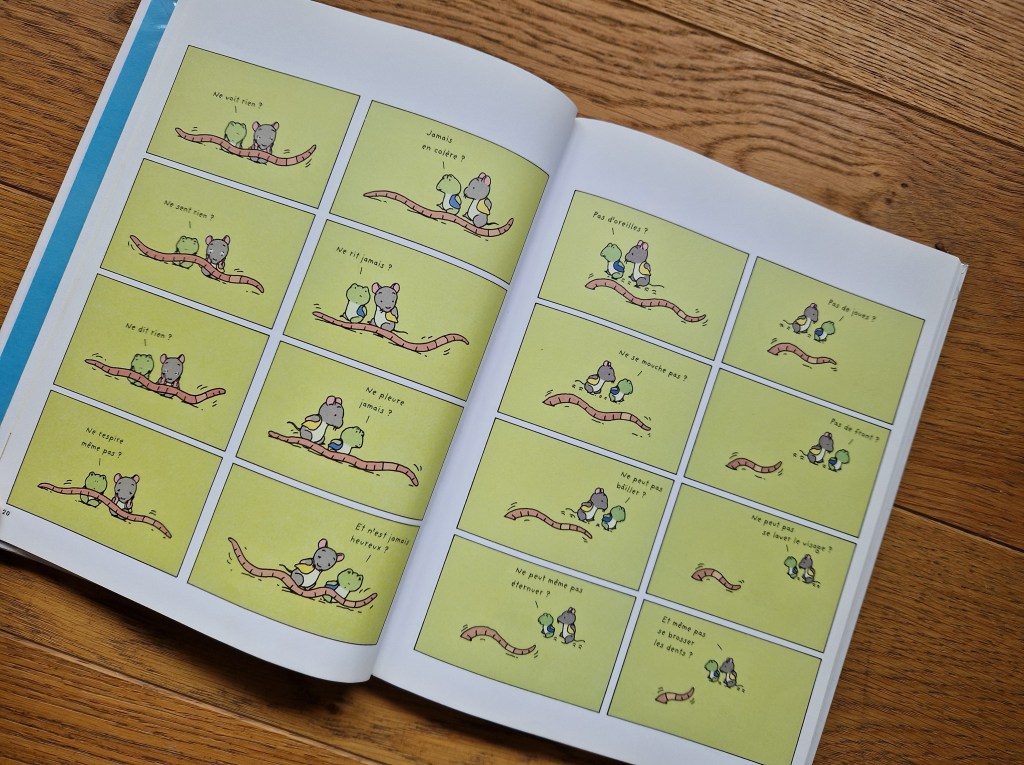 Ici, place aux réflexions philosophiques. Une petite grenouille, accompagnée par son amie souris, abordent des questions simples.