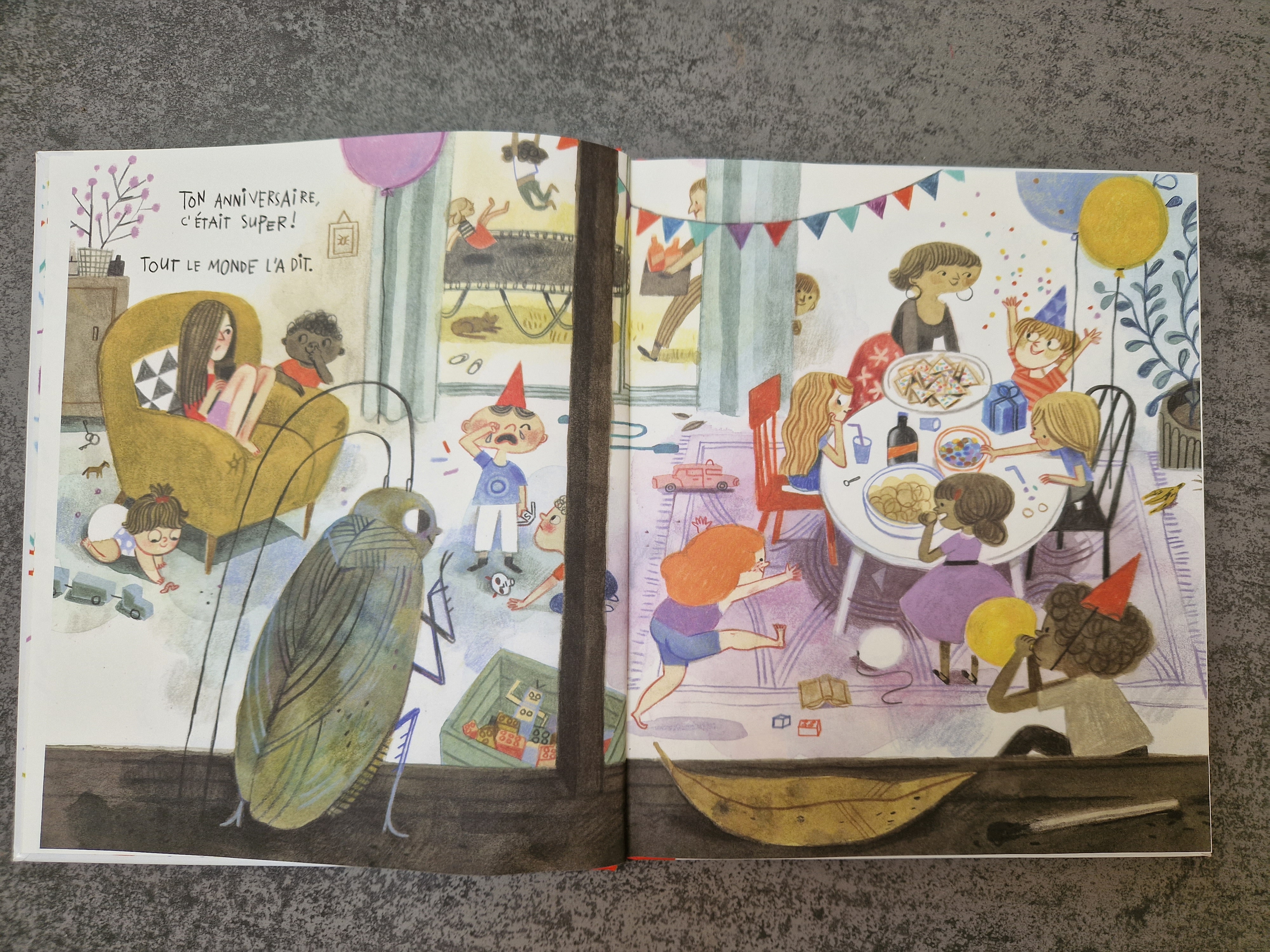 Un album très drôle et complètement décalé ! On prendra plaisir à observer les belles illustrations de Felicita Sala et leur multitude de détails, qui nous rappellent les fêtes d’anniversaires de nos petits chéris (les cafards en moins bien sûr).