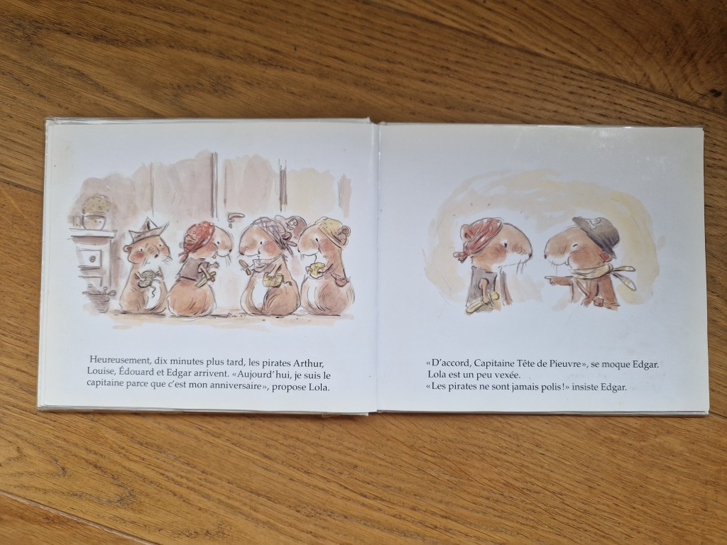 C’est l’anniversaire de Lola et évidemment, elle trépigne d’impatience. Elle attend avec hâte l’arrivée de ses amis pour sa fête de pirate et la chasse au trésor organisée avec soin par son papa !