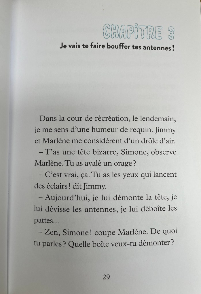 Petit clin d’oeil par ailleurs, la petite soeur de Simone a le même prénom que ma fille et avec la même orthographe. La passion des filles, ce sont les combats de boxe. Et emportée par la victoire de son champion, Simone décide de tenir tête à César dans un combat.