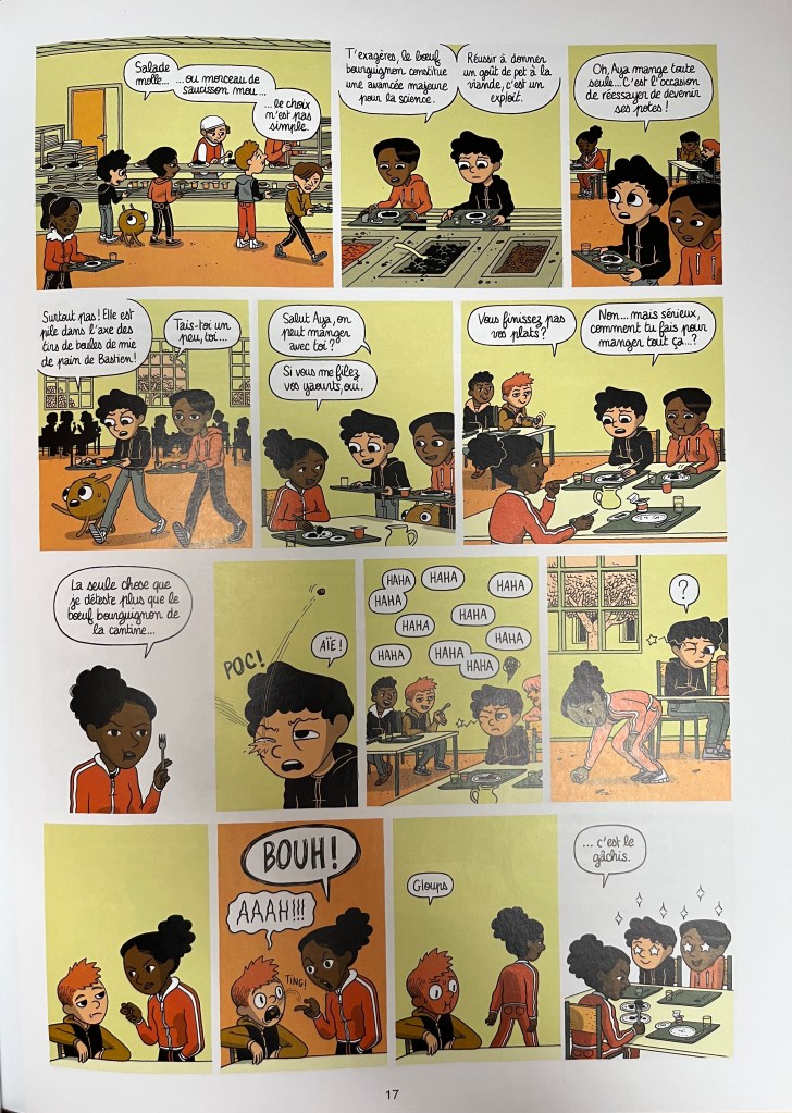 J’aime assez l’idée de se dire qu’on est pas seul à être comme on est. Pour Elliott c’est l’angoisse! Mais les enfants de sa classe, même ceux qui ont l’air très surs d’eux, sont toujours très humains. Les harceleurs ont eux aussi leur histoire. Bref, Théo nous offre une version pas trop manichéenne d’un groupe de gamins de 6ème; mes enfants ont adoré!