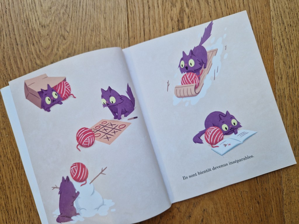 Les illustrations sont simples et un peu dépouillées mais sont parfaitement en ligne avec l’histoire je trouve. Et les expressions du chat… priceless !