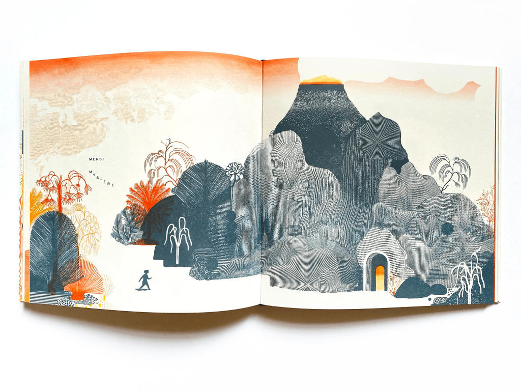 Un vrai livre d’art avec ces illustrations flamboyantes, faites avec seulement 3 couleurs, qui nous emmènent en voyage.