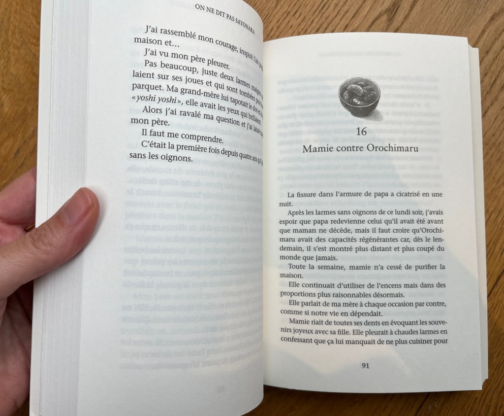 Et, par dessus, on ajoute l’arrivée imposée de la Mamie japonaise qui s’inquiète de ne pas avoir de nouvelles et débarque de Kyoto, un bon cocktail pour chambouler le quotidien de ce duo muré dans le silence. Progressivement, la vie va s’installer à nouveau; l’espoir de parler de cette Maman qui nous manque. Comprendre, accepter et revivre.