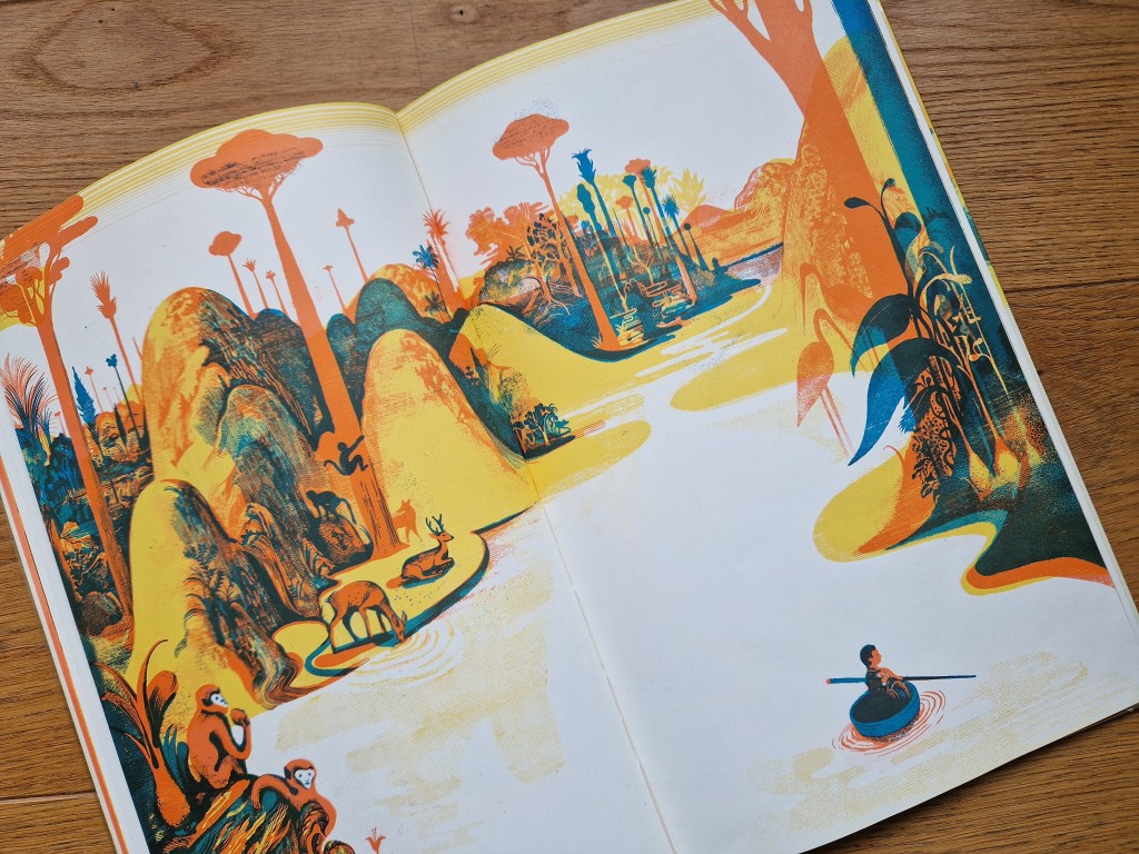 Ce que j’aime dans les albums jeunesse, c’est l’originalité et la diversité. Cette fois-ci, on a affaire à un grand album, tout en longueur, imprimé sur du papier épais (c’est tellement agréable ces grosses pages !)