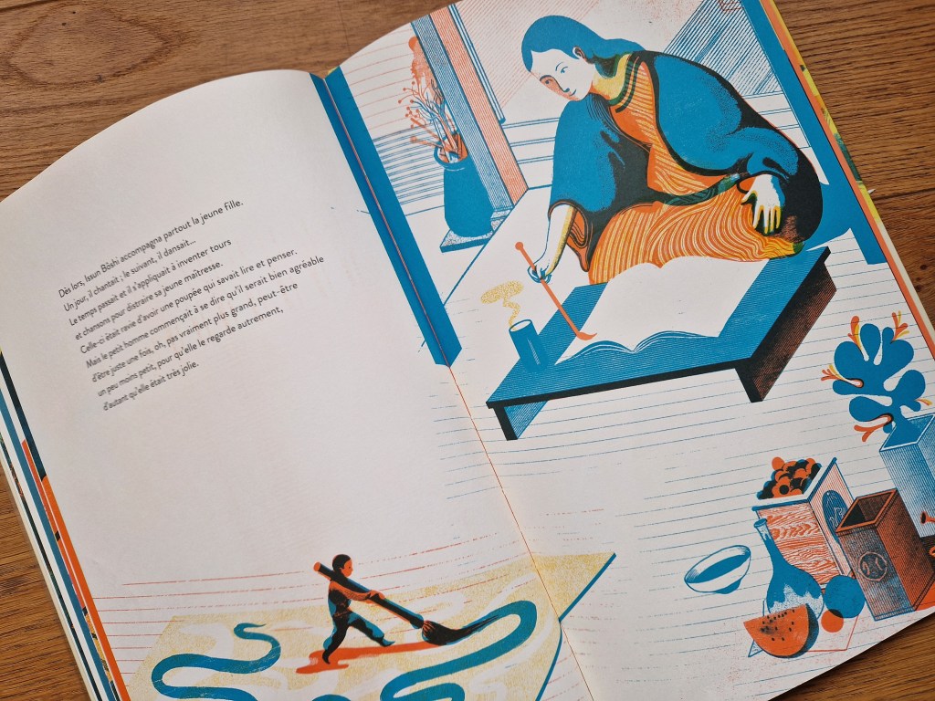 Je ne vous en dit pas plus. Et vous laisse découvrir la fin de l’histoire de ce petit personnage au coeur de samouraï, qui aimerait bien malgré tout avoir taille humaine et qui nous prouve qu’on peut faire de grandes choses en étant petit.