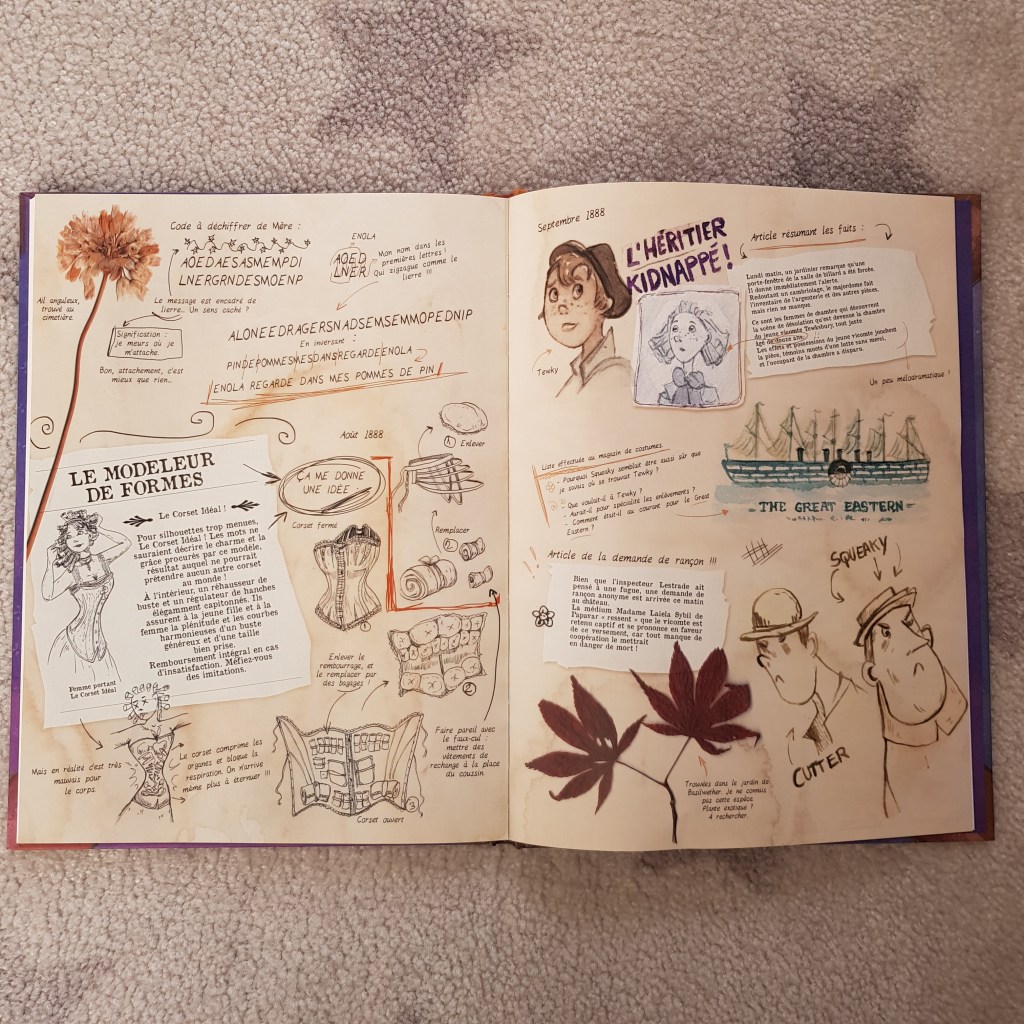 A la fin de l’album, le carnet secret d’Enola avec ses dessins et les notes qu’elle prend pour résoudre ses énigmes.