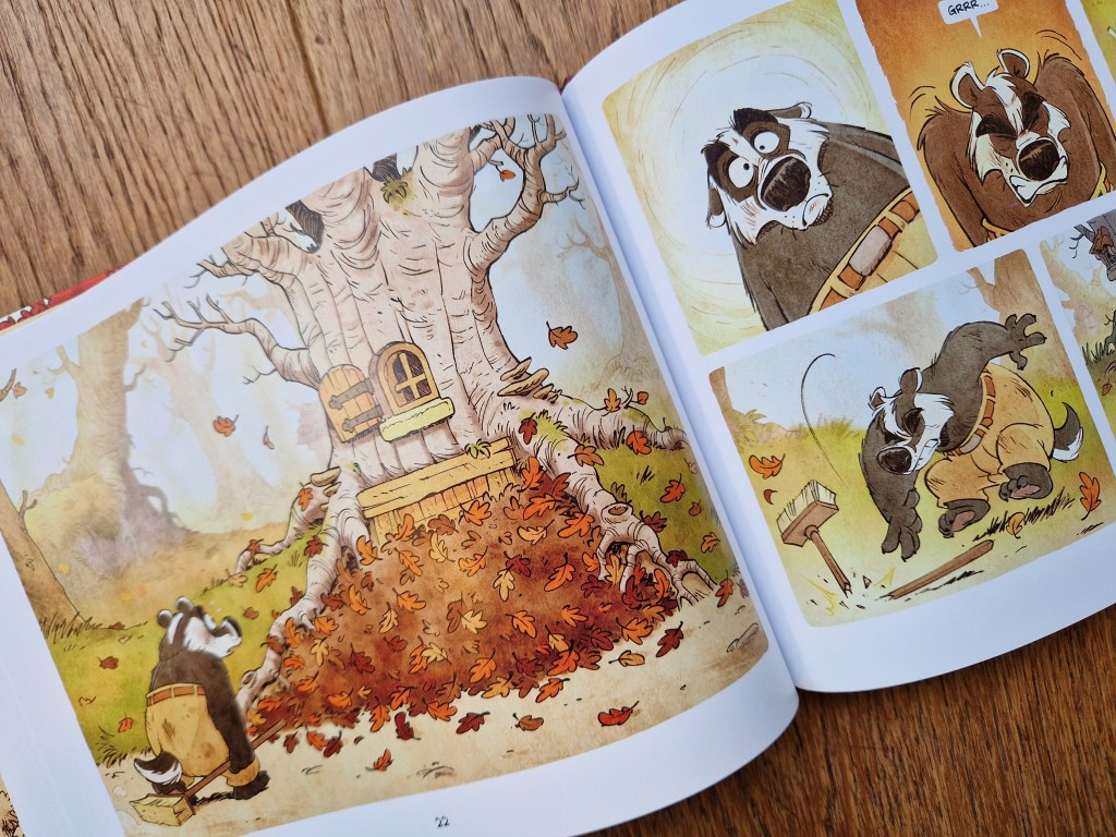 C’est l’automne. Alors que tous les animaux de la forêt se préparent à hiberner pour l’hiver, Monsieur Grumpf, le blaireau, lui, essaie désespérément de balayer toutes les feuilles mortes devant sa porte.