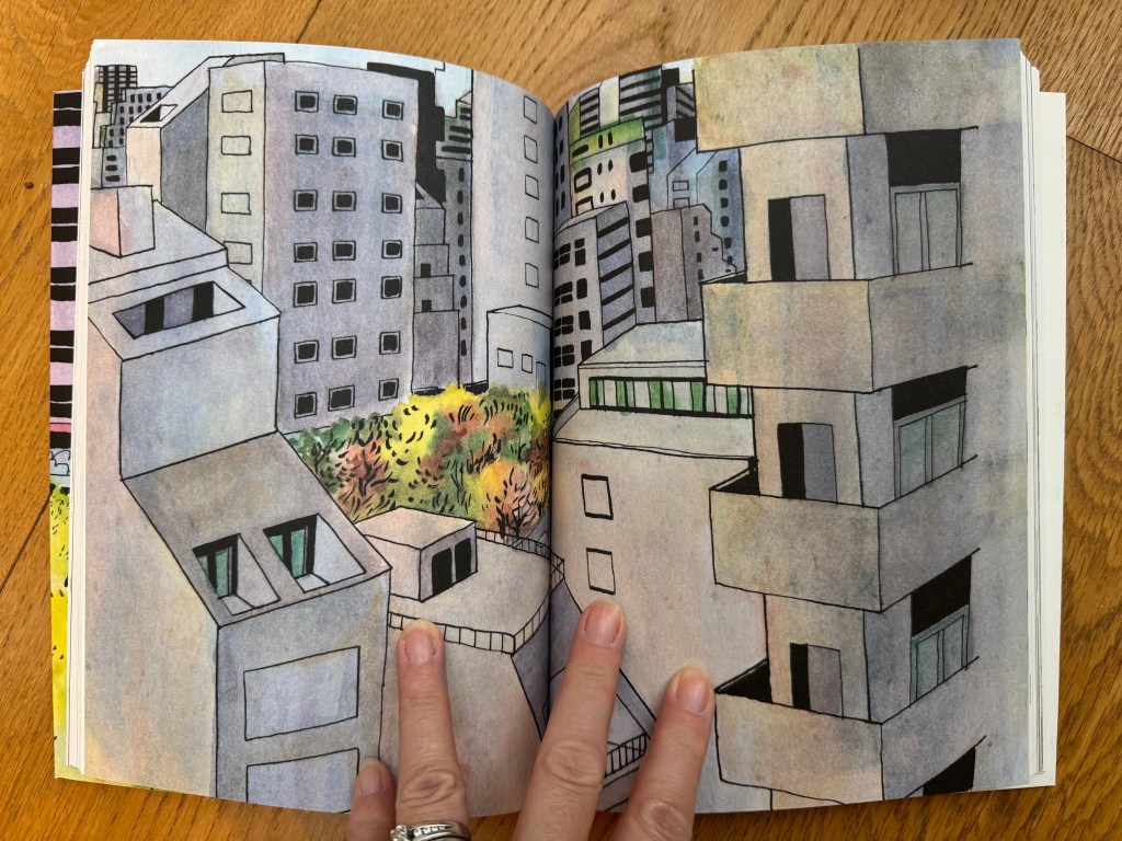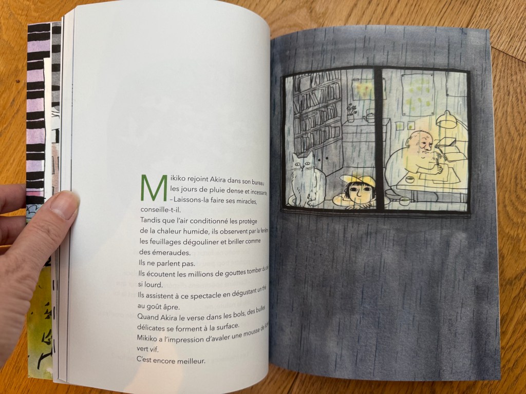 Ce livre est une docu-fiction, c’est l’histoire de Mikiko, une petite fille qui vit dans un minuscule appartement à Tokyo avec sa Maman qui travaille de nuit. Dans cette ville de béton, la seule chose qui semble l’apaiser, c’est la verdure de ses songes, comme une plante elle cherche l’oxygène de la vie.