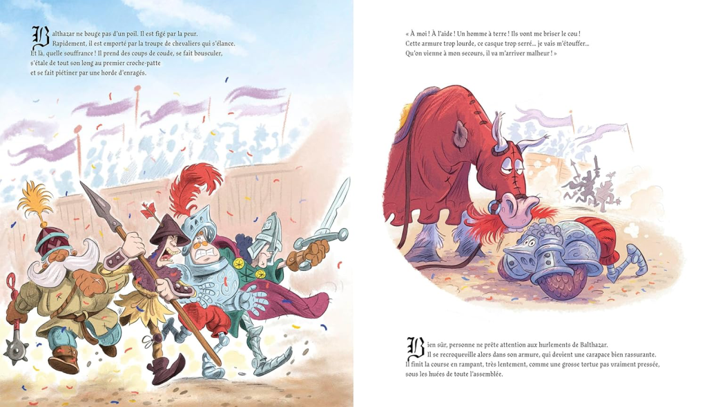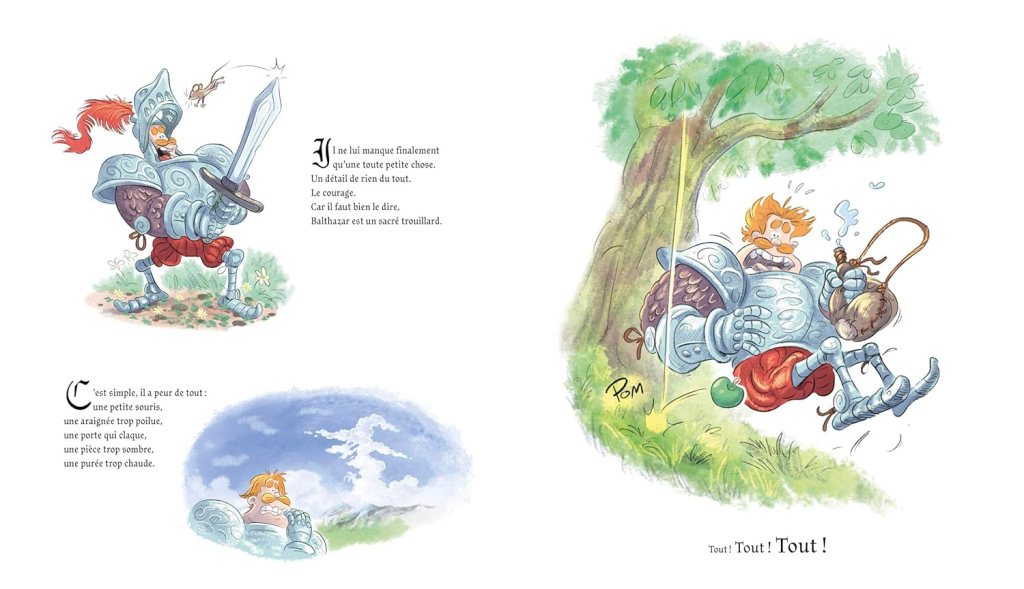 Balthazar a l’air d’être un chevalier tout ce qu’il y a de plus normal. Mais l’habit ne fait pas le moine. Sous sa belle armure, il cache un secret : une peur de tout. Des araignées poilues, des petites souris, des portes qui claquent, du noir, et même de la purée trop chaude.